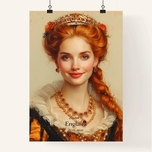 Elizabeth I, England, 1533 - 1603, A Poster of a woman with red hair and a crown