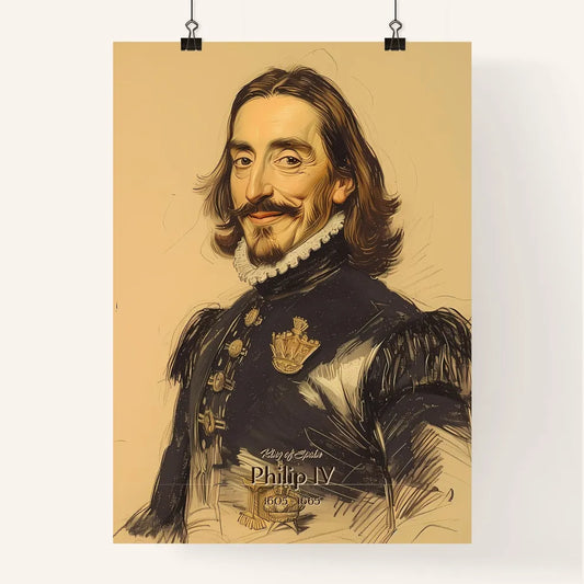 King of Spain, Philip IV, 1605 - 1665, A Poster of a man with long curly hair and mustache