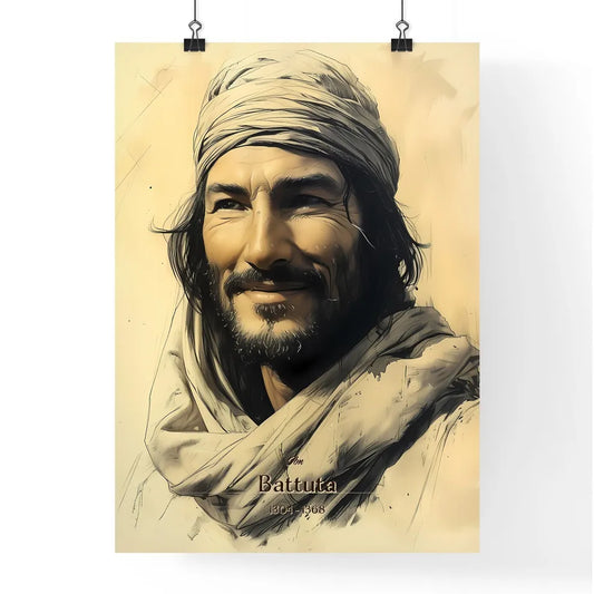 Ibn, Battuta, 1304 - 1368, A Poster of a man with a beard and a scarf
