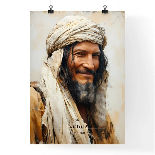 Ibn, Battuta, 1304 - 1368, A Poster of a man with a beard and turban