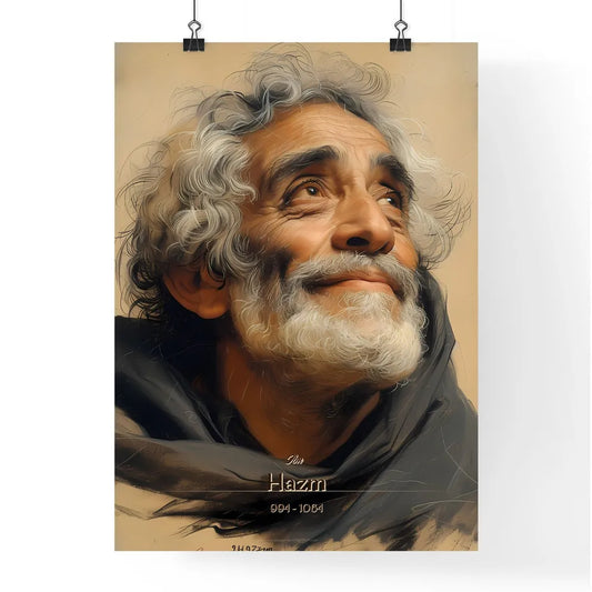 Ibn, Hazm, 994 - 1064, A Poster of a man with a beard and a scarf looking up