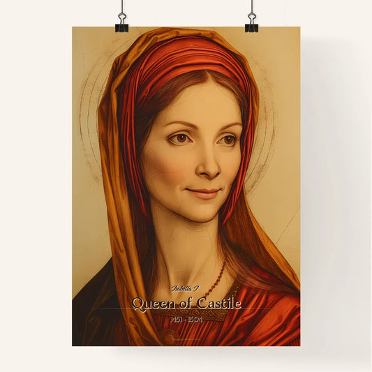 Isabella I, Queen of Castile, 1451 - 1504, A Poster of a painting of a woman with a red head wrap