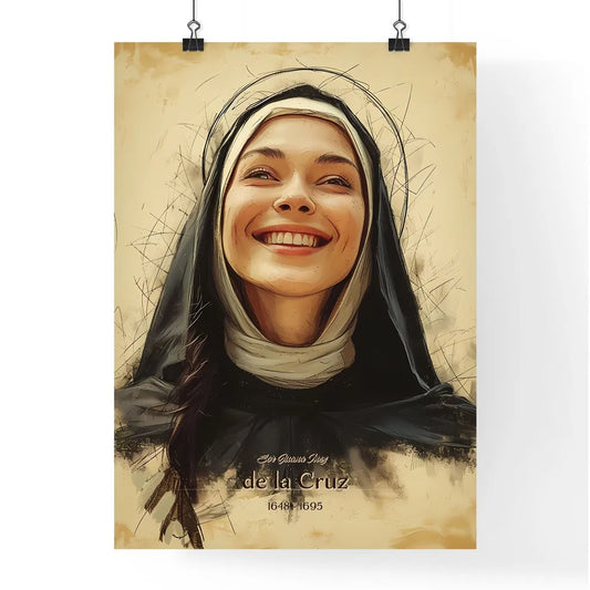 Sor Juana Inez, de la Cruz, 1648 - 1695, A Poster of a woman smiling with a hood