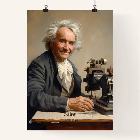 Thomas, Saint, c. 1780 - 1830, A Poster of a man sitting at a table with a sewing machine