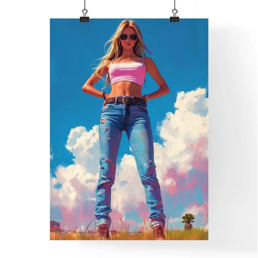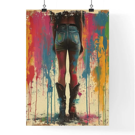 Cowgirl woman beautiful shorts, boots - Art print of a woman in shorts and boots