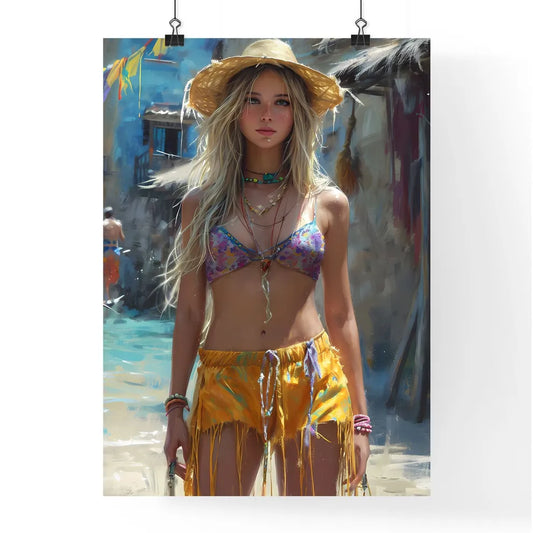 Cowgirl woman beautiful shorts, boots - Art print of a woman in a garment and hat