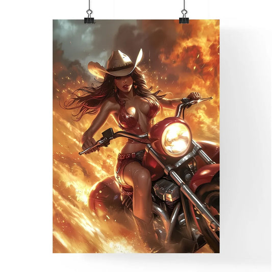 Cowgirl riding a rocket - Art print of a woman riding a motorcycle