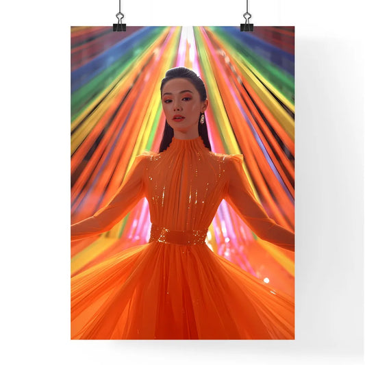 The head nurse sharply directed the nurses riding a rocket - Art print of a woman in garment holding a rocket