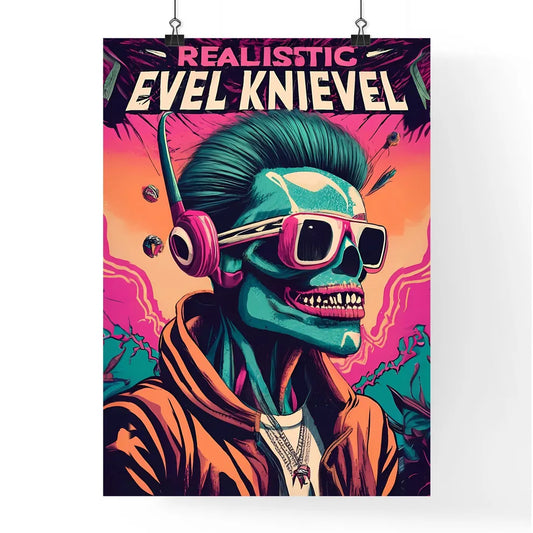 Evel Knievel - A Poster Of A Man With A Skull Wearing Sunglasses And Headphones