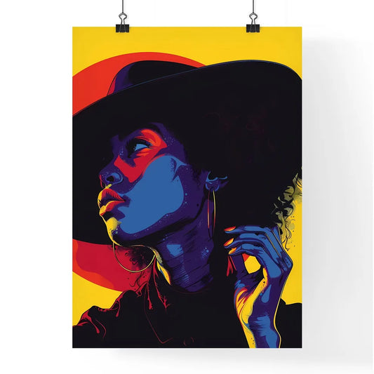 Avant-Garde Art Poster: Vibrant Womans Proud Fingers, Retro Style, Strong Contrast, Slender Black Girl, Extraordinary Expression - 35yo, Print