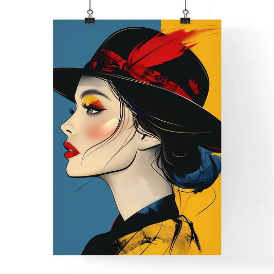 Minimalist, Nostalgic, Vibrant, Manga, Feminine, Delicate, Oriental, Woman, Red, Yellow, Blue, Hat, Stock Image, Painting, Art