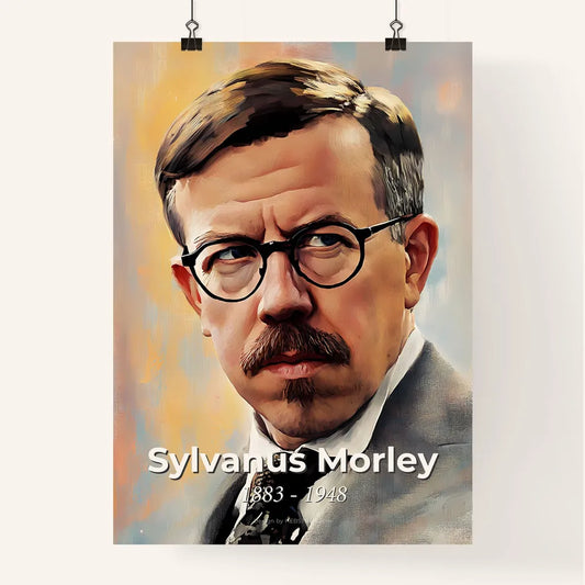 Portrait of Sylvanus Morley, 1883 - 1948. Impressionistic painting of a man with a mustache wearing glasses.