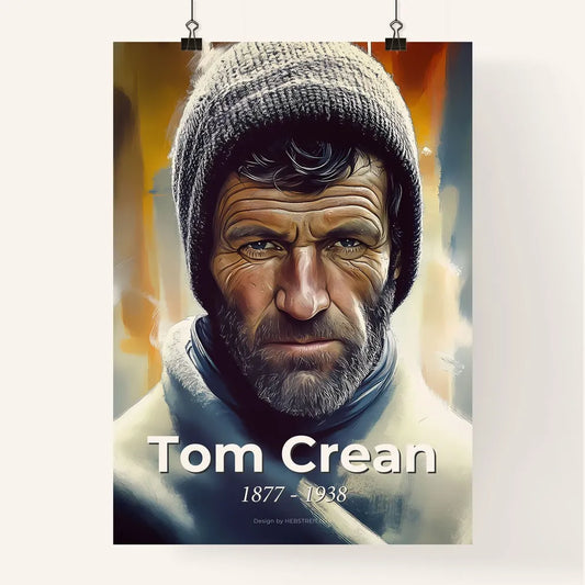 Portrait of Tom Crean, 1877 - 1938. Impressionistic painting of a man wearing a knit hat.