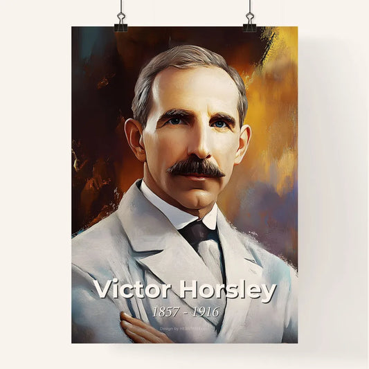 Portrait of Victor Horsley, 1857 - 1916. Impressionistic painting of a man with mustache and mustache wearing a suit and tie.