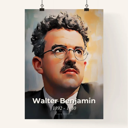 Portrait of Walter Benjamin, 1892 - 1940. Impressionistic painting of a man with curly hair wearing glasses and a suit.