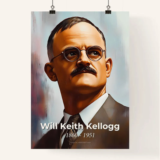Portrait of Will Keith Kellogg, 1860 - 1951. Impressionistic painting of a man in a suit and tie.
