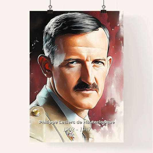 Portrait of Philippe Leclerc de Hauteclocque, 1902 - 1947. Impressionistic painting of a man with a mustache.