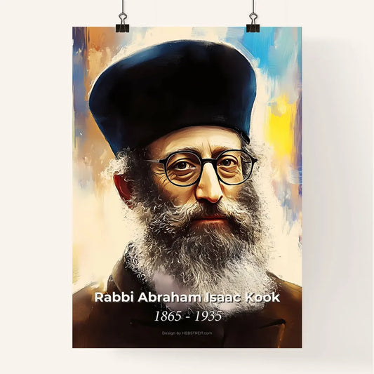 Portrait of Rabbi Abraham Isaac Kook, 1865 - 1935. Impressionistic painting of a man with a beard and glasses.