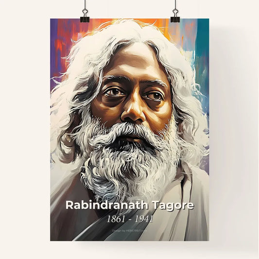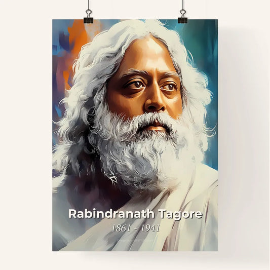 Portrait of Rabindranath Tagore, 1861 - 1941. Impressionistic painting of a man with long white hair and beard.
