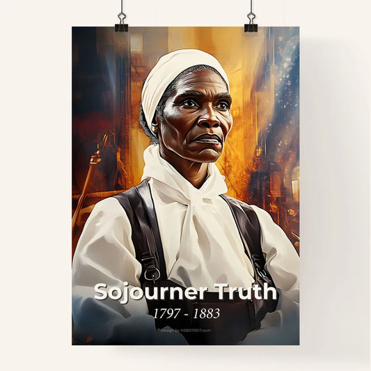 Portrait of Sojourner Truth, 1797 - 1883. Impressionistic painting of a woman in a white shirt and white scarf.