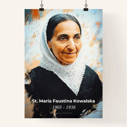 Portrait of St. Maria Faustina Kowalska, 1905 - 1938. Impressionistic painting of a woman wearing a white scarf.
