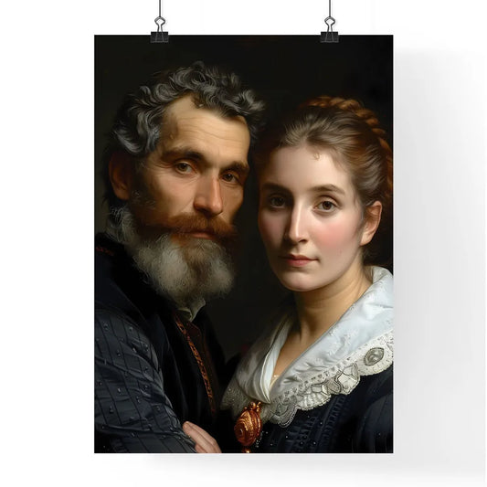 Noble Couple: 19th Century Portrait of Elegant Man and Woman, Dressed in Black, Gazing at the Viewer in Vibrant Artistic Painting