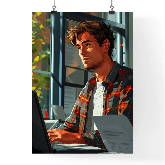 Vibrant Painting Depicts an Individual Working on a Laptop in a Professional Setting