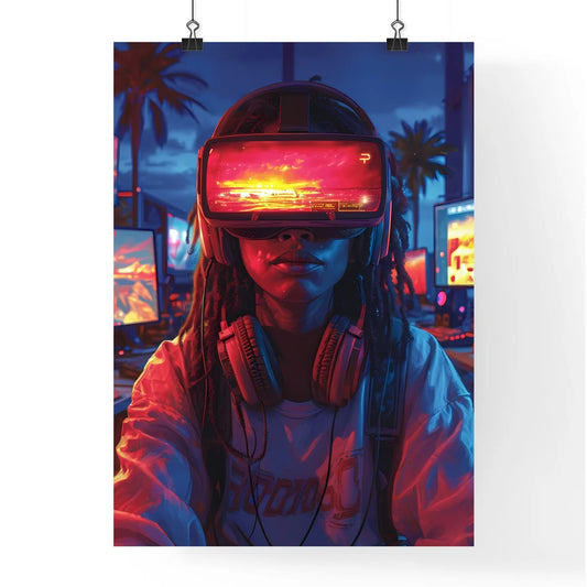 A trendy gamer streams herself - Art print of a person wearing virtual reality goggles