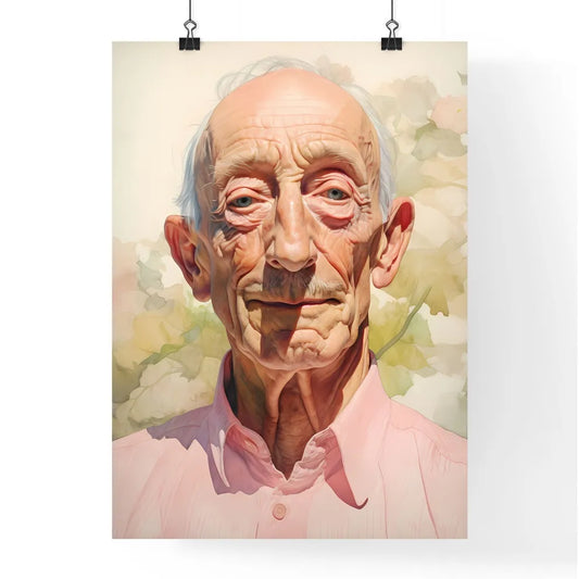 A Poster of elderldy mans full face - A Man In A Pink Shirt