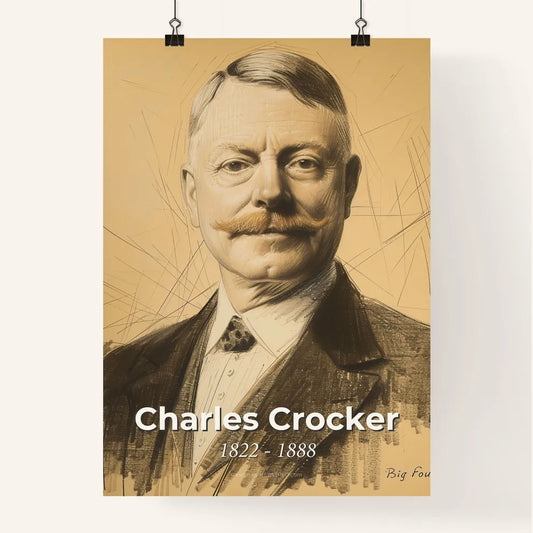 Charles Crocker: Iconic American Industrialist - Captivating Contemporary Portrait on Beige, Perfect for Elegant Home Decor!