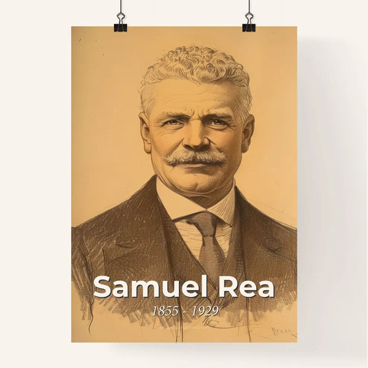 Elegant Portrait of Samuel Rea, Iconic Railway Visionary, Masterfully Rendered in Contemporary Style on Exquisite Beige Paper