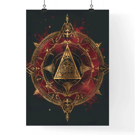 A Poster of the shadow of the trinity is shown - A Gold And Red Circle With A Triangle In Center