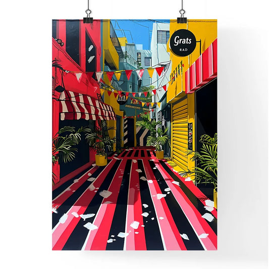 A Poster of the words congratulations dad on a red and black background - A Colorful Alley With Plants And Flags