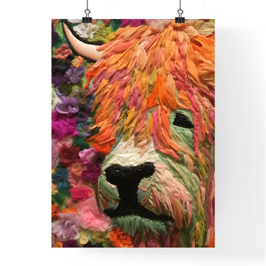 A Poster of Embroidery impasto painting highland cow - A Close Up Of A Colorful Animal