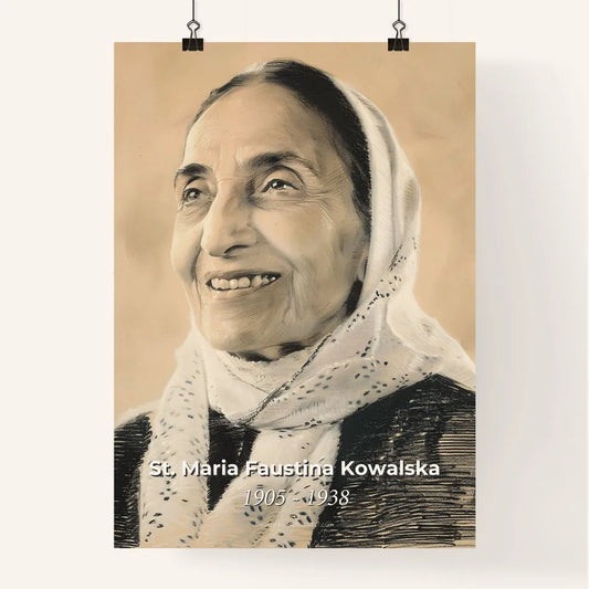 Elegant Contemporary Portrait of St. Maria Faustina Kowalska - Divine Mercy Icon on Beige - Perfect for Home Decor & Gifts
