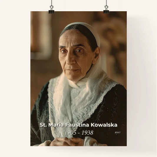 Exquisite Portrait of St. Maria Faustina Kowalska: A Timeless Tribute in Monochrome for Home Decor and Meaningful Gifts