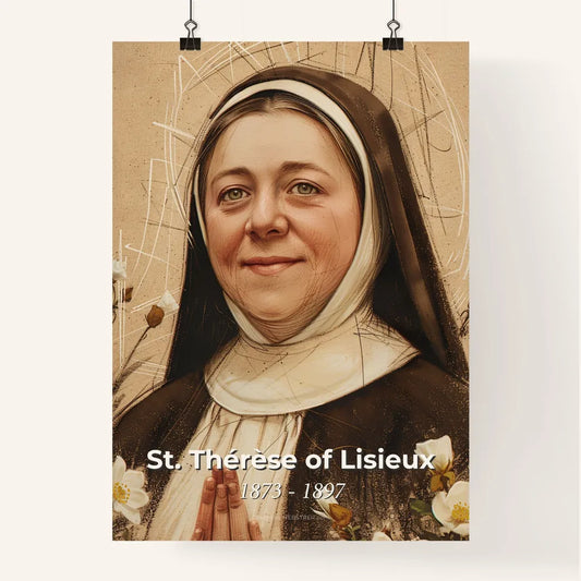 Enchanting Portrait of St. Thérèse of Lisieux: Contemporary Art Print for Home Décor - Elegant Allure on Beige Background