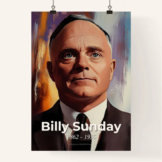 Portrait of Billy Sunday, 1862 - 1935. Impressionistic painting of a man in a suit and tie.