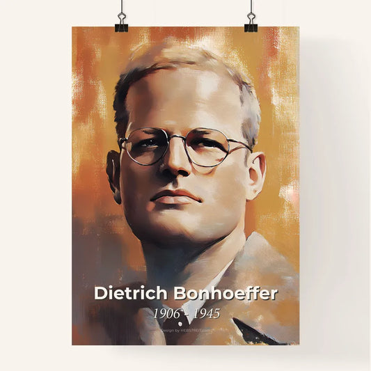 Portrait of Dietrich Bonhoeffer, 1906 - 1945. Impressionistic painting of a man wearing glasses.
