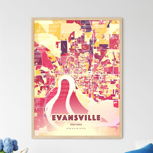 Colorful Evansville Indiana Fine Art Map Poster | Customizable