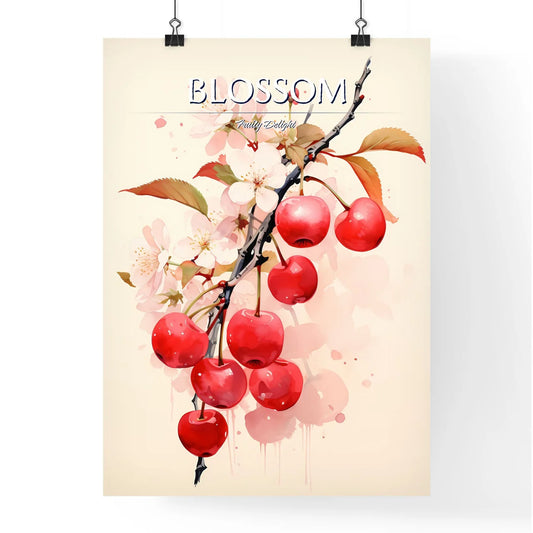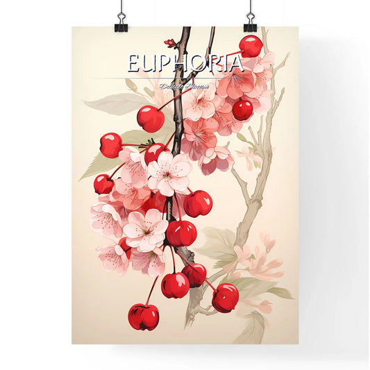 A Cherry Tree Branch With Red Fruits And White Flowers
