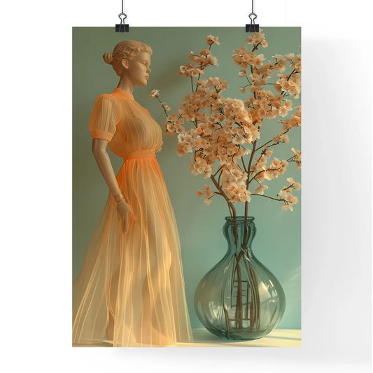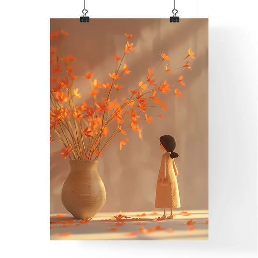 32K UHD minimalist cartoon doll standing next to light orange and pink vase painting with vibrant art focus patty maher lively colorized tableaus