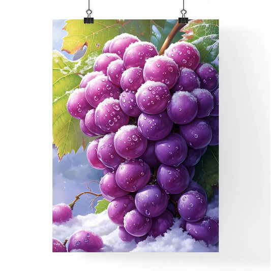 A bunch of purple grapes covered in snow - Art print of a bunch of pink grapes with water drops on it