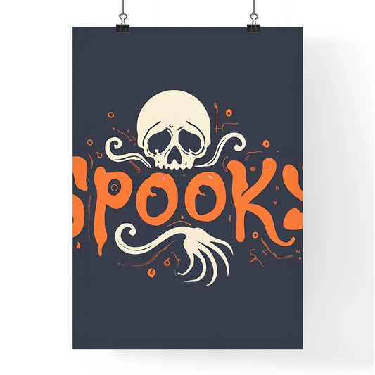 Spooky - A White Skull With Orange Letters And A Black Background Art Print