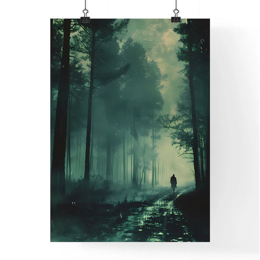Surreal, Grainy VHS-Style Digital Painting of a Forest at Night with a Floating Figure