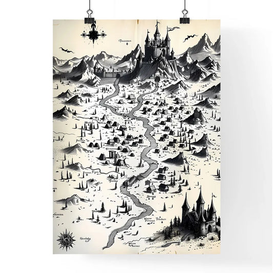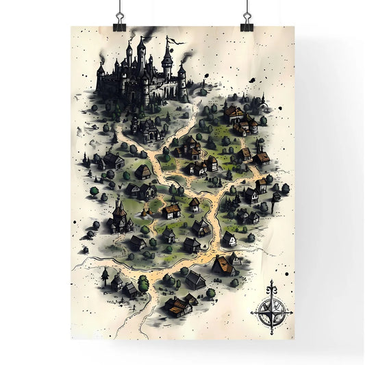 Fantasy artwork depicting a medieval map of a town ruled by an evil vampire