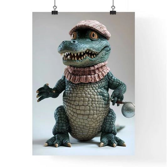 Male anthropomorphic alligator in golfer attire, standing upright, isolated on white with a painterly style and slight aliasing, full-body render in 3D character cartoon