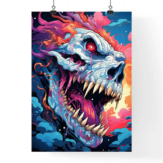 A Poster of low dutch angle digital acid trip - A Cartoon Of A Skull With Flames And Sharp Teeth