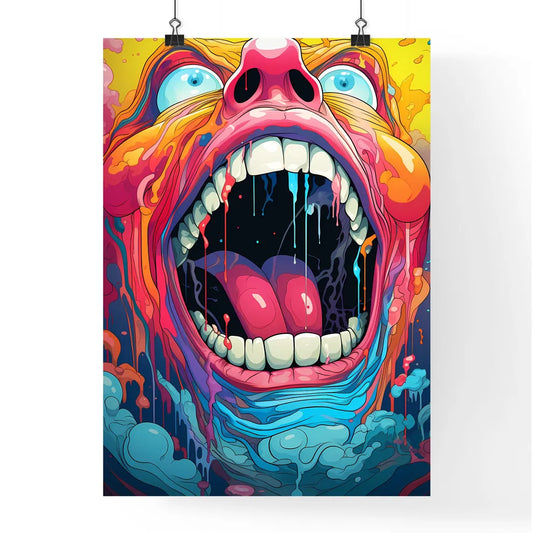 A Poster of low dutch angle digital acid - A Colorful Face With Tongue And Eyes