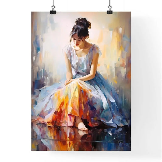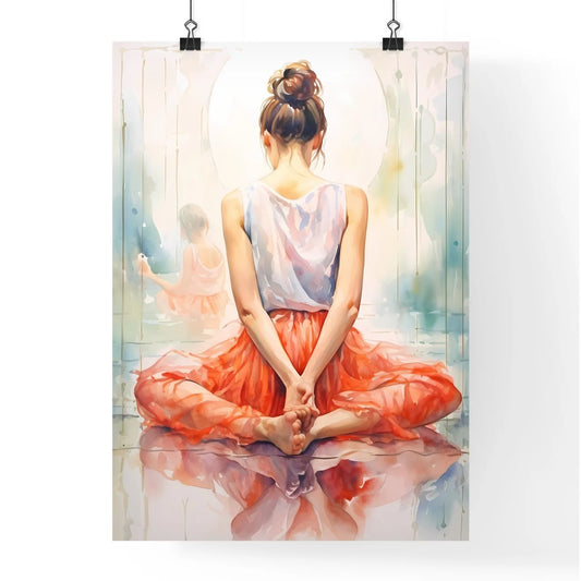 Watercolor Of A Woman In A Pink Dress Sitting On A Floor Art Print